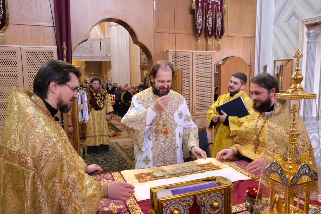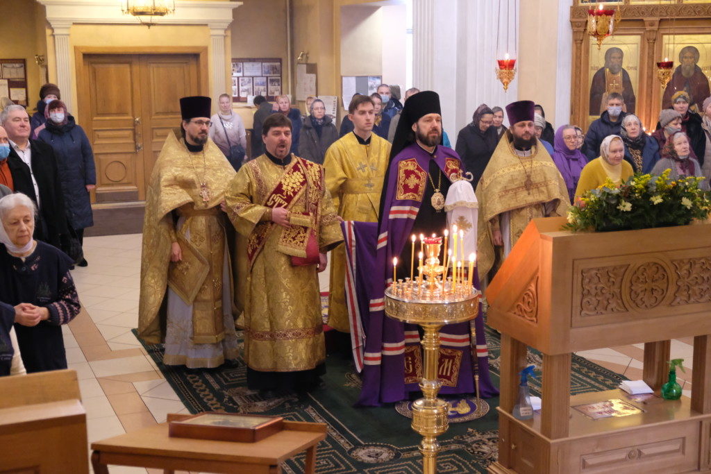 Божественную литургию и Молебен чина Торжества Православия в нашем соборе иконы Божией Матери «Неопалимая Купина» совершил Преосвященнейший епископ Гатчинский и Лужский Митрофан. Его Преосвященству сослужили настоятель собора протоиерей Стефан Витько, протоиерей Антоний Добош и иерей Николай Виноградов.